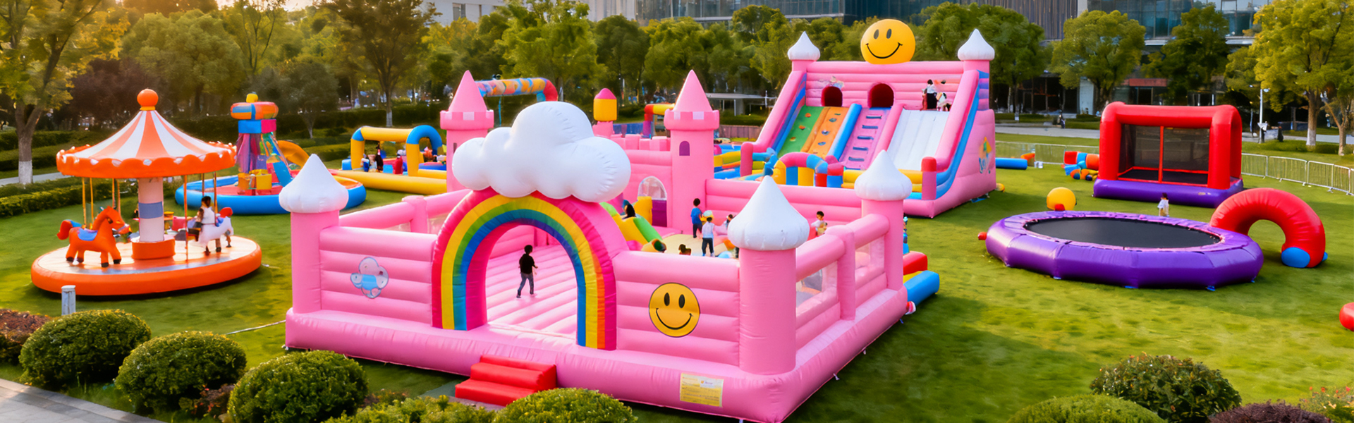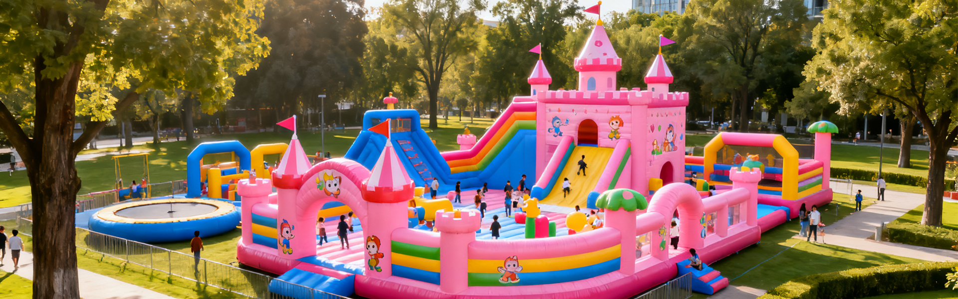 Dành cho những gia đình có trẻ nhỏ hoặc những người muốn có thời gian vui chơi nhiều hơn một chútđặc biệt,sân chơi bơm hơilà một sự lựa chọn tuyệt vời. Những cấu trúc bơm hơi này có tính nănglâu đài nảy,slide,các khóa học vượt chướng ngại vật, và thậm chíhố bóng. Chúng có thể được thiết lập nhanh chóng và xì hơi để dễ dàng cất giữ. Một số mẫu thậm chí còn đi kèm vớiđặc tính của nước, hoàn hảo cho niềm vui mùa hè!